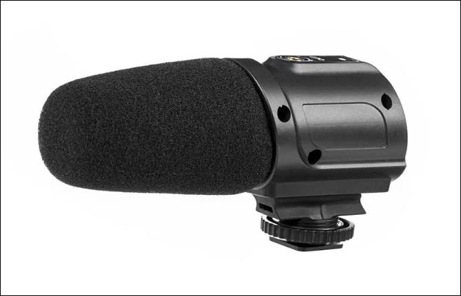 Saramonic Super Cardioid Unidirectional Condenser Microphone PMIC1. This mike is designed as the first step towards better quality audio, with a lightweight shotgun style design that enables it to sit comfortably in a cold shoe mount.