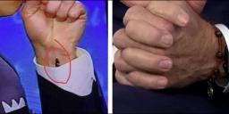 Fact-checking outlets Lead Stories and PolitiFact confirmed on Wednesday the Democrat was actually smoothing out a shirt crease - not adjusting a wire.