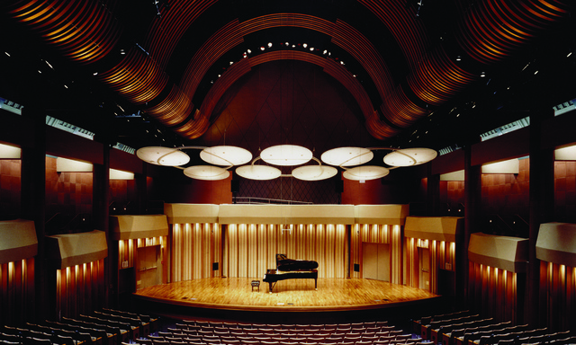 I will use three cameras - the two GH2s will be more or less my lock-down cameras. I'll also use a Canon for close-up work - a 60D (which I have used successfully in the past at this loaction) Luckily the intimate concert hall (Zipper Hall in Los Angeles http://s3.amazonaws.com/pa-spaces.production/attachments/950/Zipper%20Hall%20piano%20wide%20angle%203x5.slide.jpg?1300312961) is gorgeous, light-brown wood interior, the players are going to be all young (no problems with gray hair!) and the lighting is beautifully soft and even from above - no harsh or uneven spots on certain groups of players. It's a dream location. There is stadium seating and from the back of the (small) theater you get a nice elevated look of the entire orchestra. There are no harsh reflections on any instruments (thanks to the soft overhead lighting) and the only thing that's really blowing out is the conductor's score, but there is not much I can do about that.