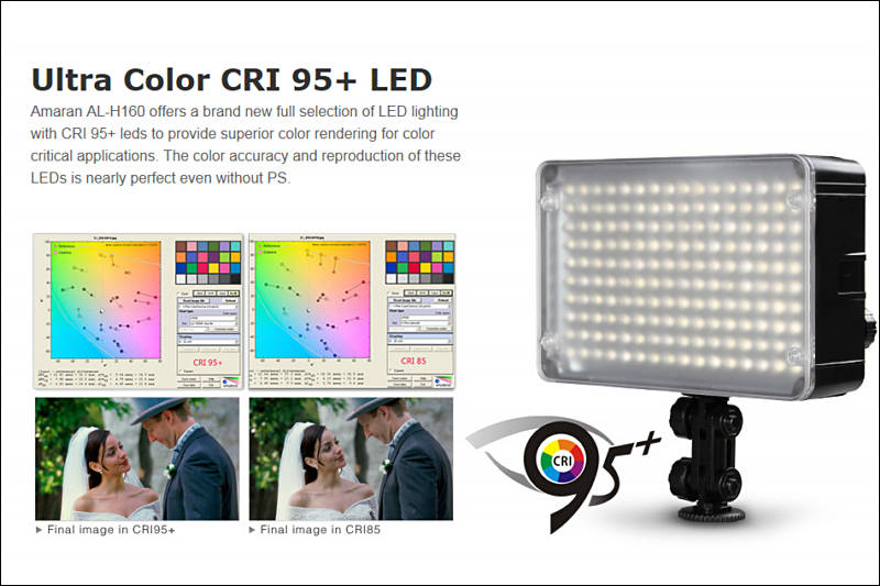 CRI 98, best lights quality available. CRI stands for Color Rendering Index. Contrary to usual LED light this one has very high quality close to tungsten.