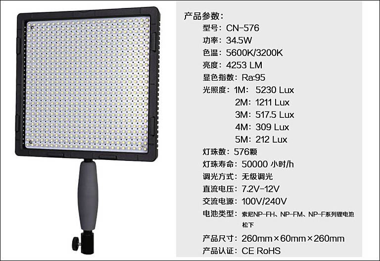 • Individual light - LED light, remote, two filters set, handle, AC power brick.