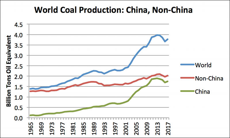 Last year, China's net additions to its coal fleet were 25.5 GW, while the rest of the world saw a net decline of 2.8 GW as more coal plants were closed than were built.